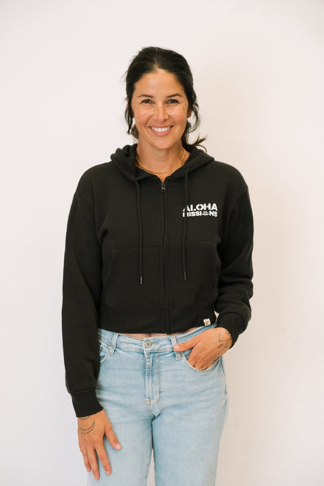 Aloha Missions Midi Crew Zip Hoodie | Black